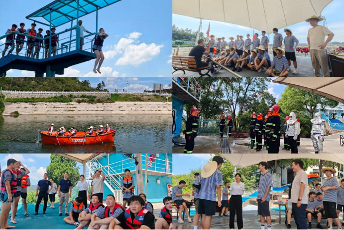The College places high importance on practical education for its maritime programs. Since July, undergraduate students from the Class of 2023 in the Marine Engineering program have been divided into three groups to undergo practical seafarer certification training at the Huangpi Mulan Water Training Base. During the training period, the students will complete four modules: Personal Survival Techniques, Fire Prevention and Firefighting, Advanced Firefighting, and Proficiency in Survival Craft and Rescue Boats.