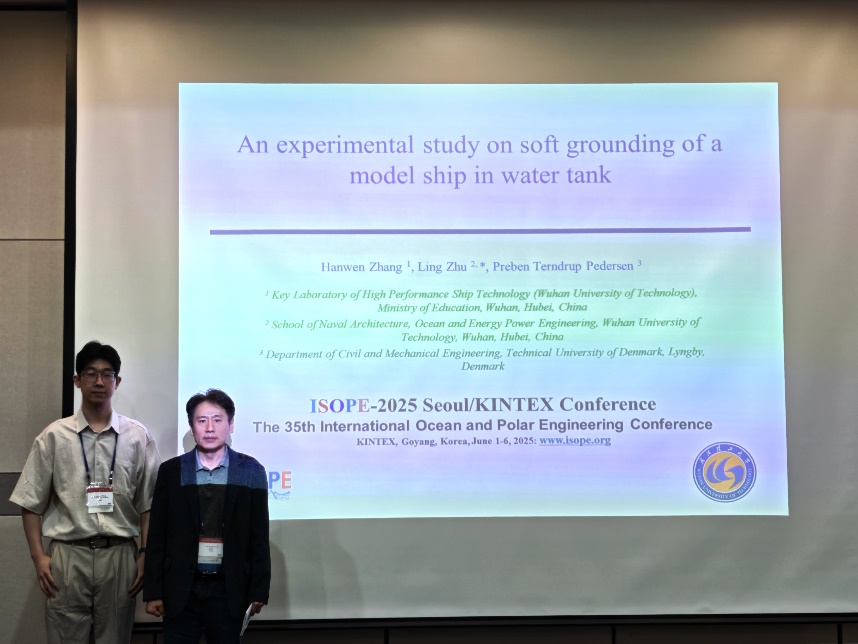 On the morning of June 4, Dr. Zhang Hanwen, as the first author and presenter of the paper, successfully published and delivered an academic conference paper entitled "An Experimental Study on Soft Grounding of a Model Ship in Water Tank".